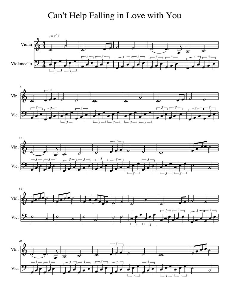 Can T Help Falling In Love Sheet Music For Violin Cello String Duet Musescore Com